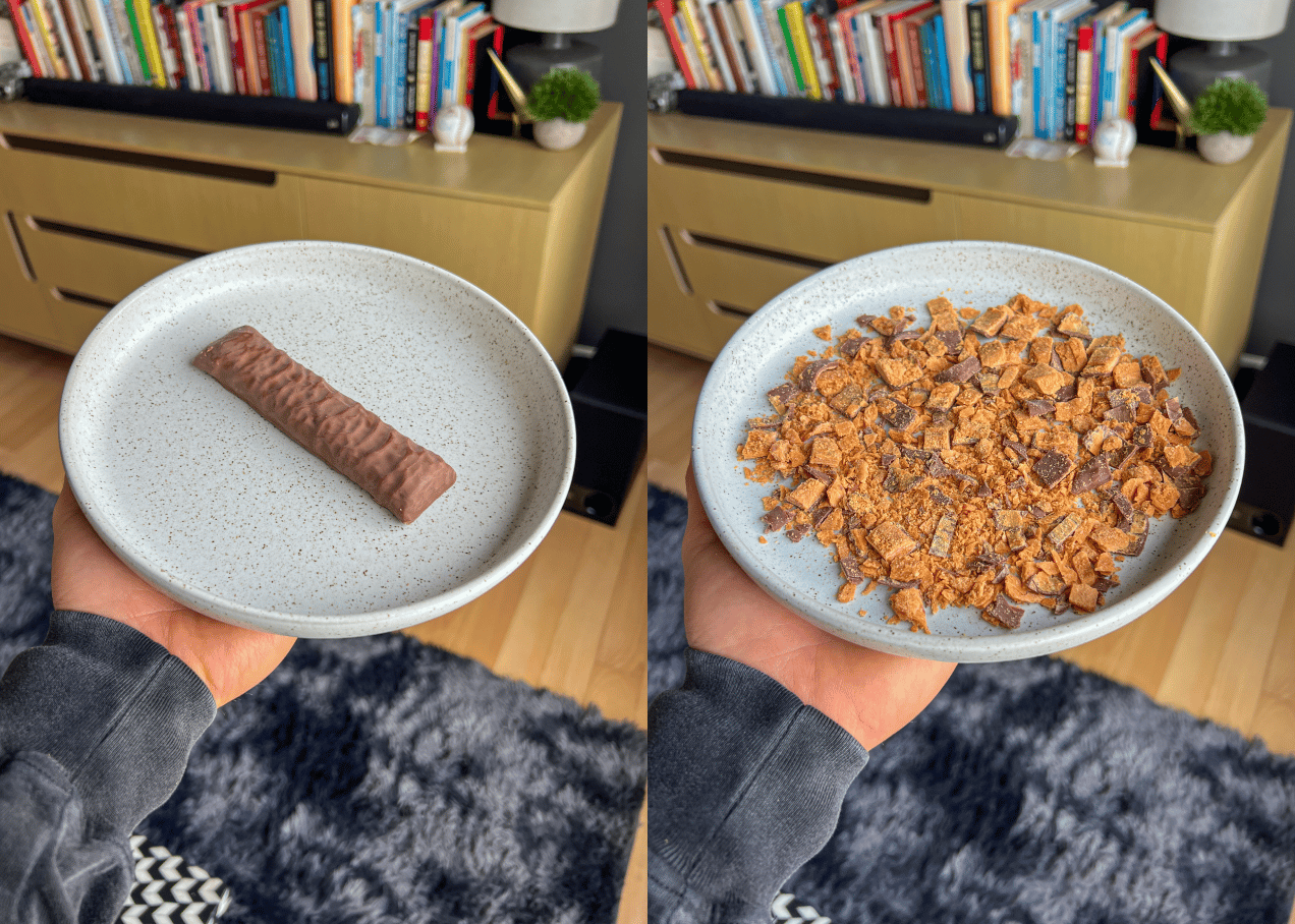 Then I crush the higher calorie foods into pieces to give more volume and then use them as toppings!