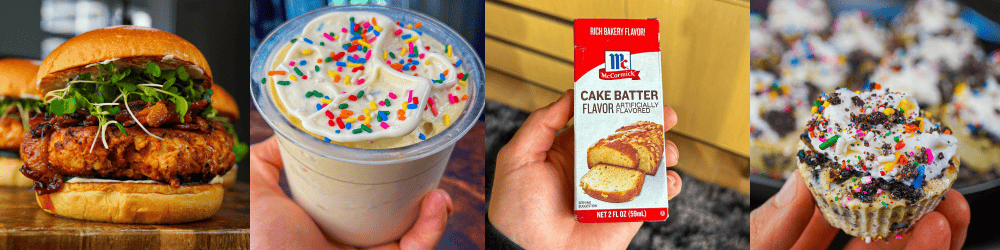 Recipes for my Gochujang Chicken Sandwich and Birthday Cake Batter Protein Ice Cream!
