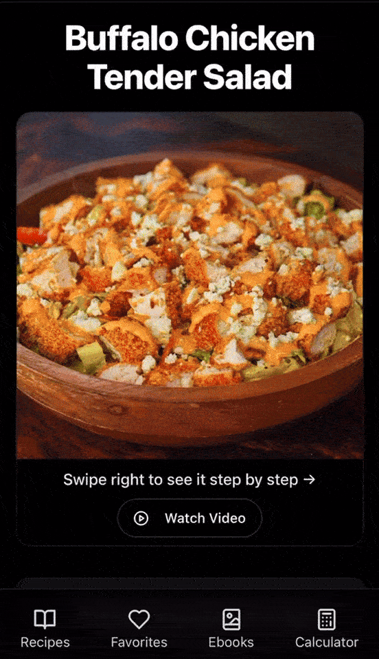 - A recipe swipe feature that allows you to see the specific steps of some recipes (we're working on making more but only have 10 done so far).